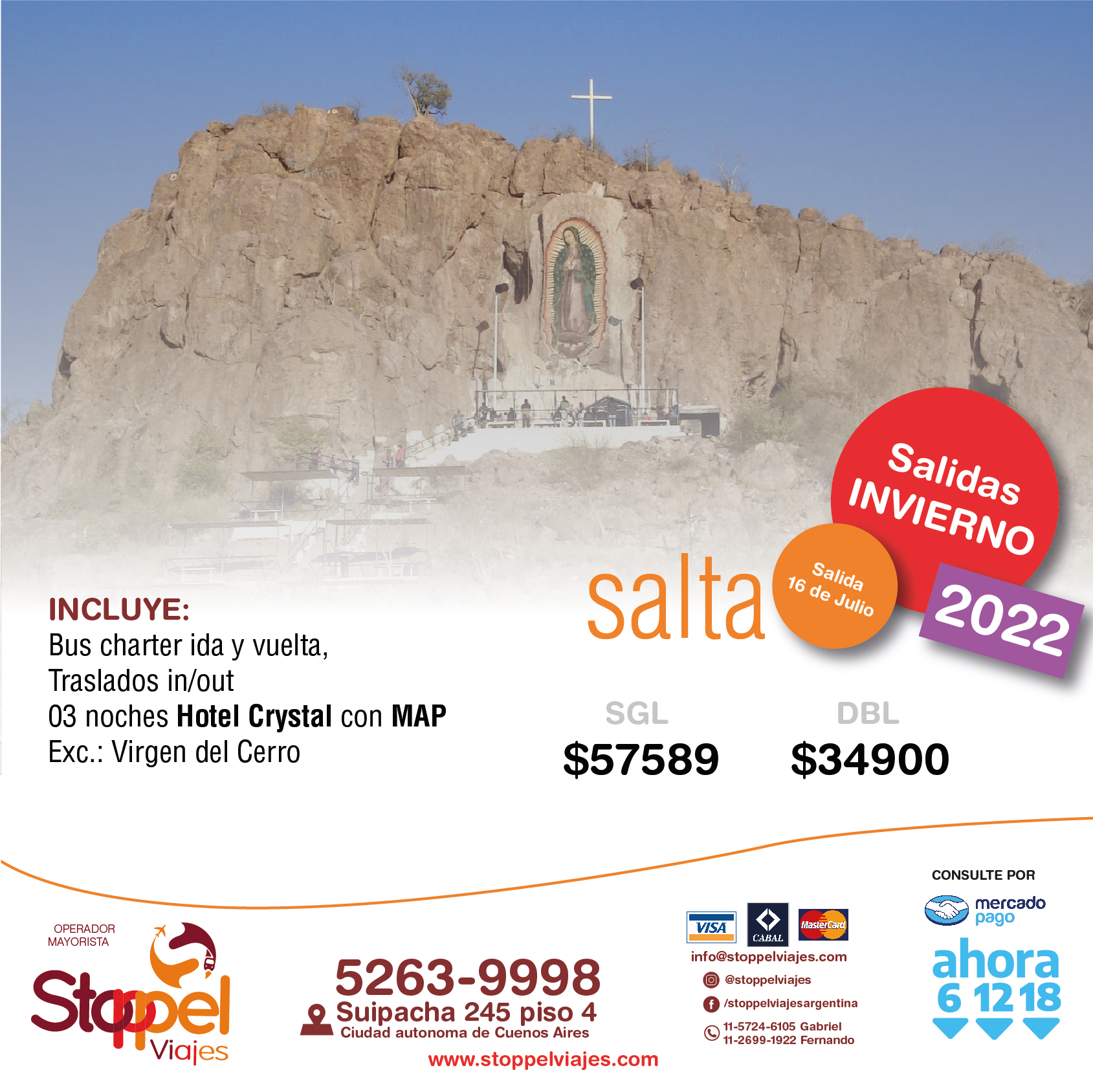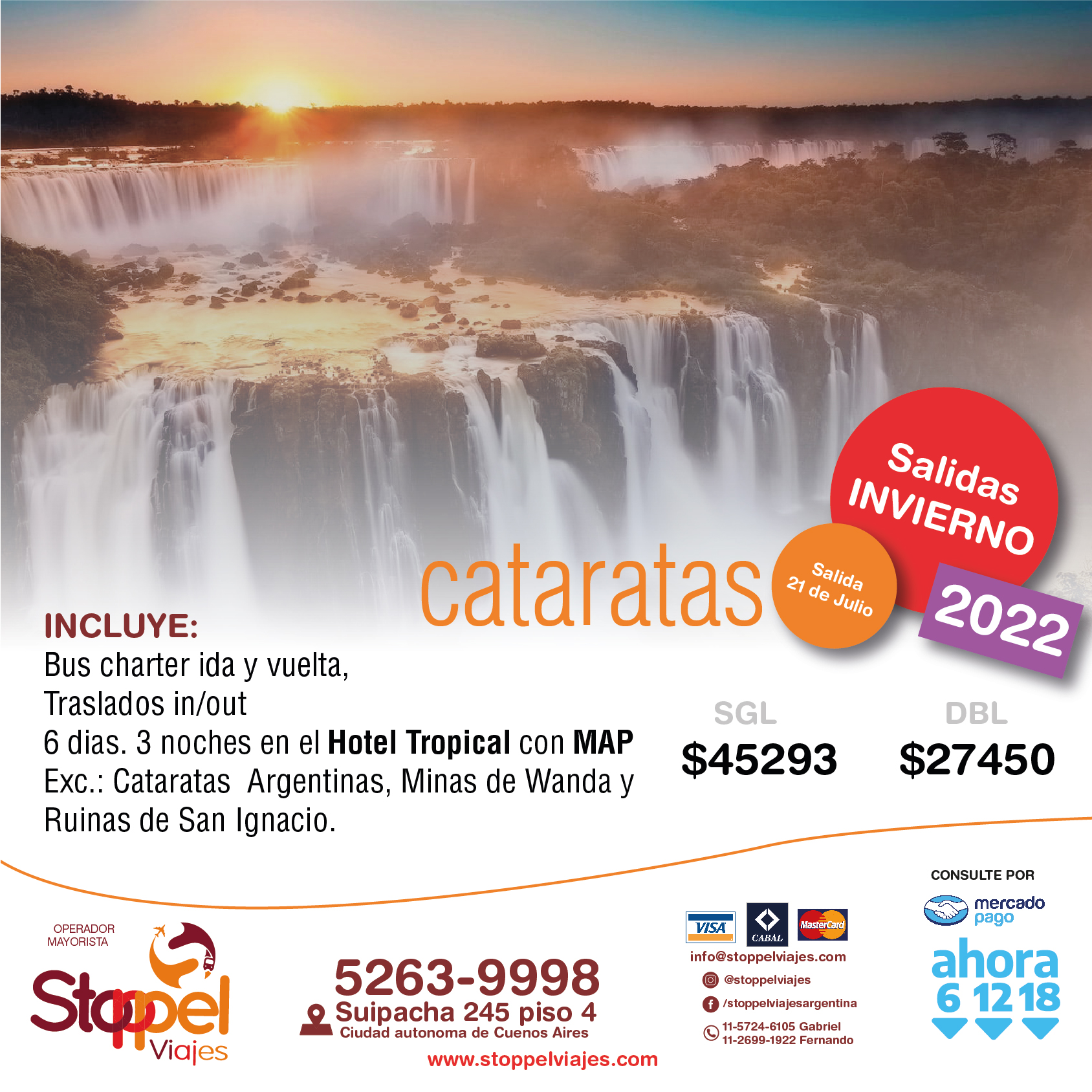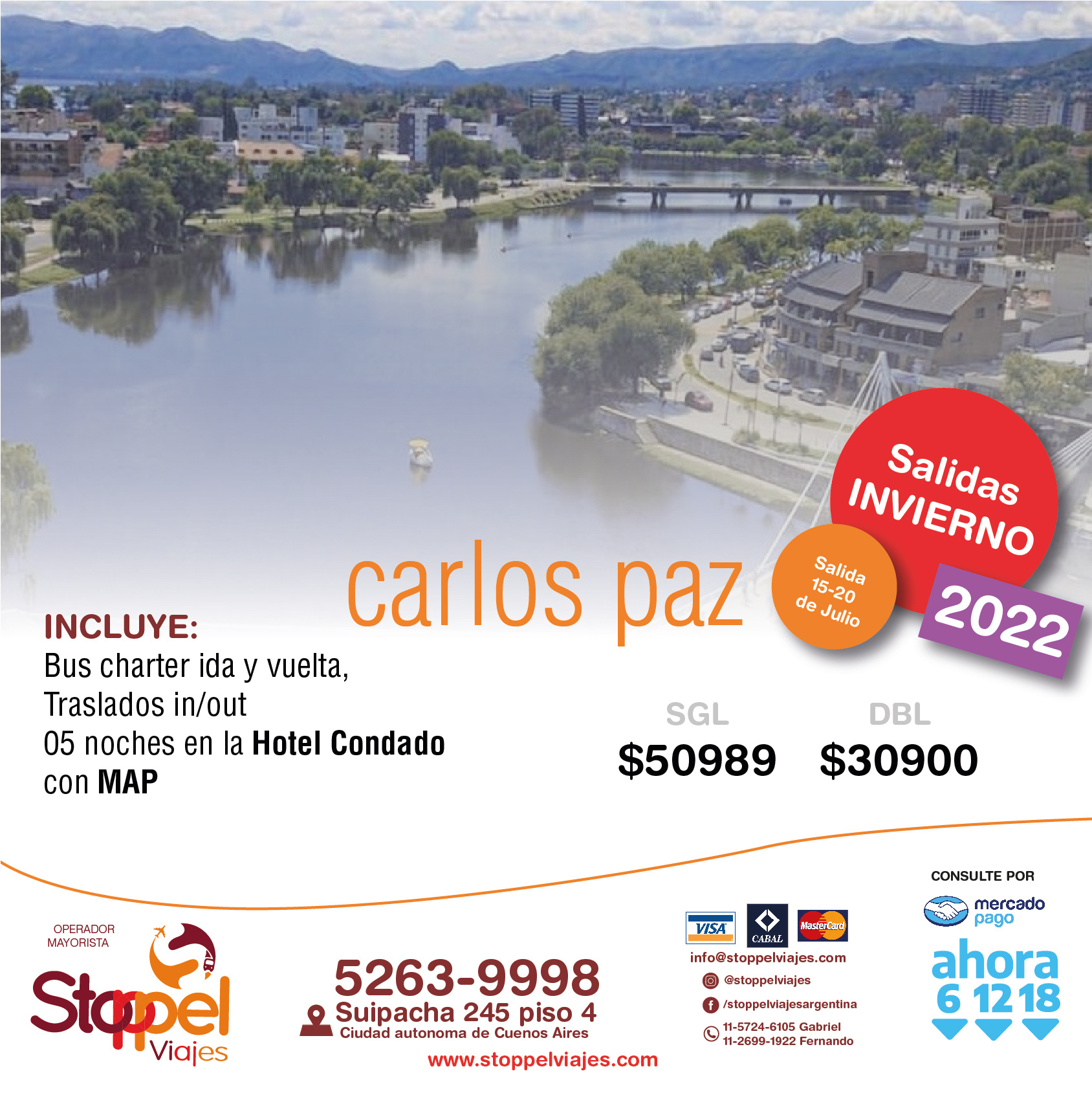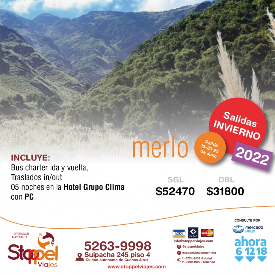 Tarifas por persona en base doble (Consulte tarifas en base Single) sujetas a disponibilidad en el momento de hacer la reserva y a modificaciones sin previo aviso. Tarifas en pesos para argentinos y/o residentes, Consulte tarifas especiales para extranjeros.
