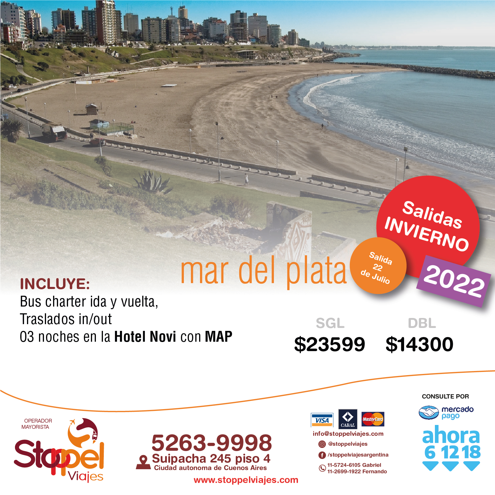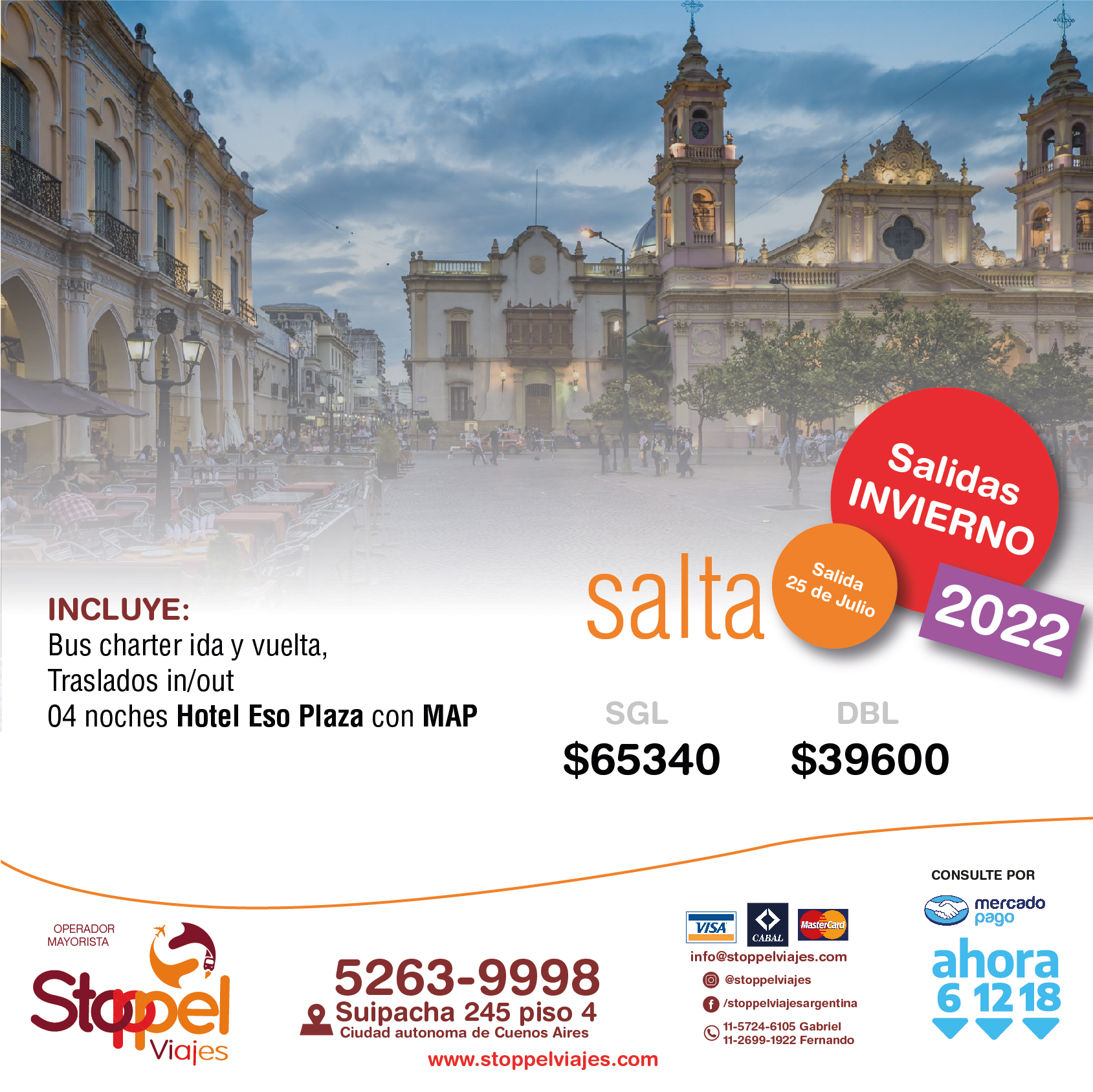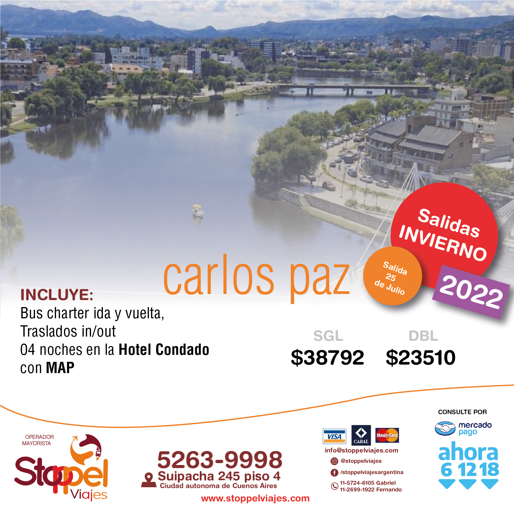 Tarifas por persona en base doble (Consulte tarifas en base Single) sujetas a disponibilidad en el momento de hacer la reserva y a modificaciones sin previo aviso. Tarifas en pesos para argentinos y/o residentes, Consulte tarifas especiales para extranjeros.