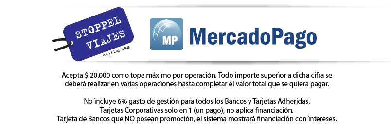 Tarifas por persona  en base doble (Consulte tarifas en base Single) sujetas a disponibilidad en el momento de hacer la reserva y a modificaciones sin previo aviso.  Tarifas en pesos para argentinos y/o residentes, Consulte tarifas especiales para extranjeros.